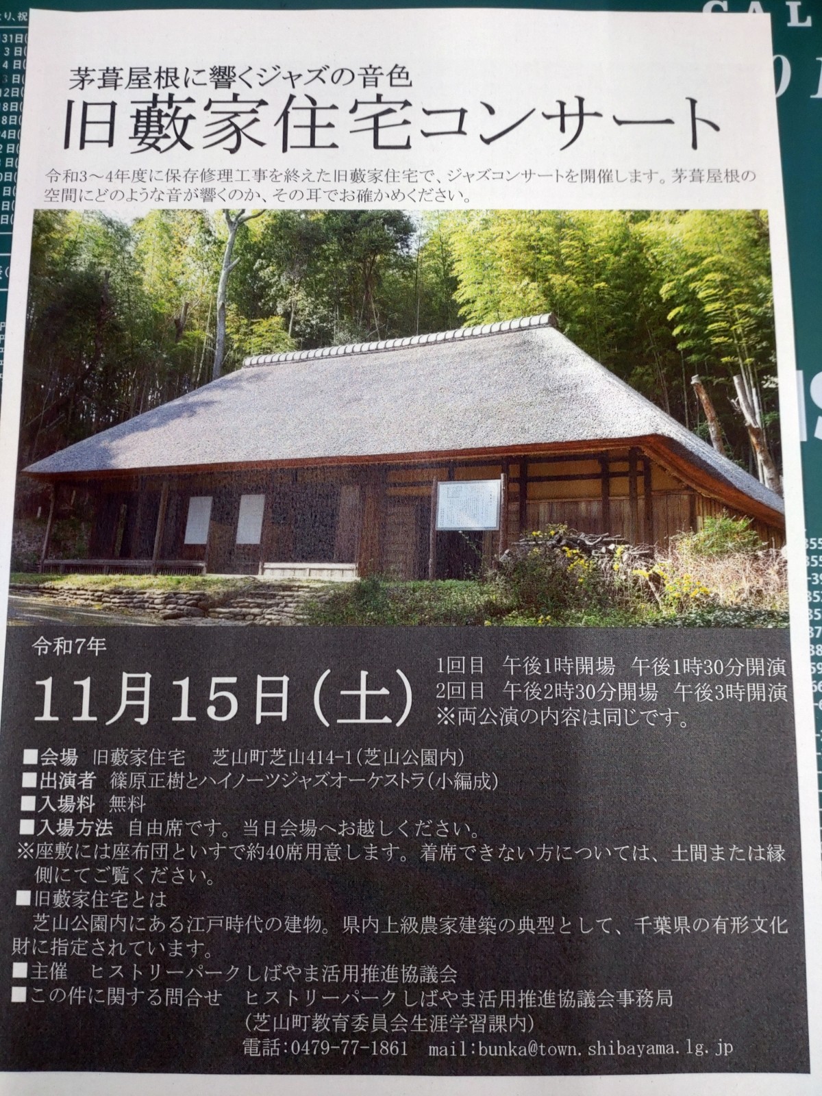その次の週には、旧藪家住宅で無料のジャズコンサートが開催される予定です。