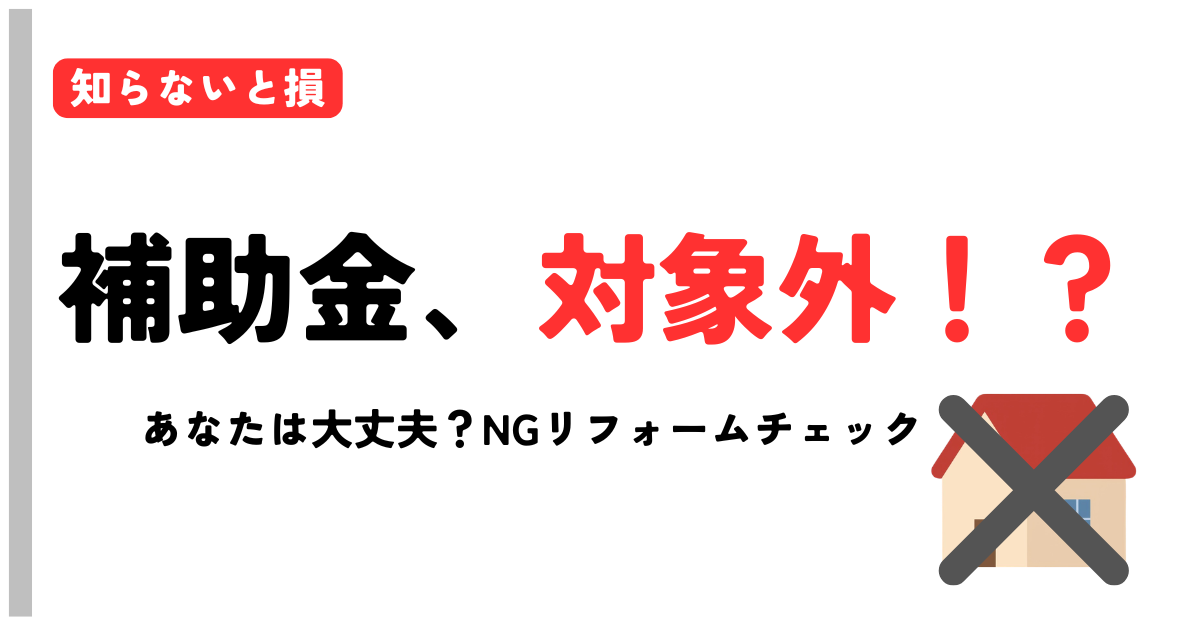 この記事では、実際によくある「補助金が使えないNGリフォーム例4パターン」と、その回避ポイントをわかりやすく解説します。